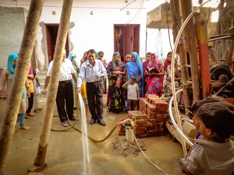 In many communities, people do not have access to clean water resources. They have to go to distant places to fetch water. Many of the water bodies are contaminated due to industrial waste. Recognizing the need for a clean drinking water in various communities, UEM has embarked on a mission to dig bore wells and place hand pumps. In many places bore wells have to be dug as deep as 700 to 800 feet below to get water. Due to the depth submersible motors are fixed to draw water. UEM has dug so far five bore wells in various communities