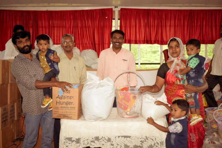 The incessant rains which have devastated the state of Kerala and the untold damage done to crops, properties and personal belongings led UEM to do a relief work. UEM recognized the immediate needs of the flood affected people and has proposed to provide 1) Two meals a day for two hundred families for one month 2) Clothing 3) Clean Drinking Water. Each family received clothing, a sack of rice, lentils, sugar, cooking oil and water filters.